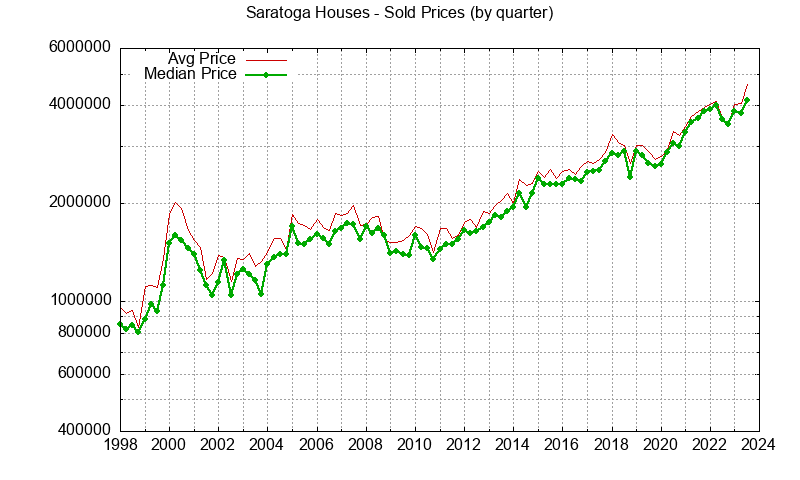 Despite high-interest rates, Saratoga house prices have reached an all-time high. Furthermore, Saratoga houses are currently showing the strongest recent price growth in Silicon Valley of any city. Although Cupertino real estate is also showing very strong house prices, other nearby cities, and zip codes are not showing as much strength. The strength of Saratoga real estate is quite localized.